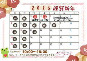 2026.01.02 2026年1月のカレンダーです🐎 昨年度もたくさんのご来店ありがとうございました。 今年もたくさんの笑顔をお届けできるよう邁進してまいります! Xmas期間のお知らせです! 前の記事 新着のお知らせ 2025.12.13 Xmas期間のお知らせです! 2024.03.26 なりまっぷさんに紹介してもらいました♪ 2024.03.07 ホームぺージを公開いたしました。